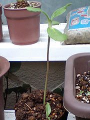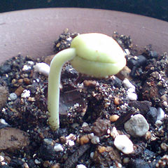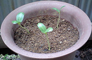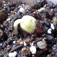 特別な加工をしていなかったので、蒔いてみたら・・・なんとか発芽・・・。