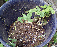 な〜んにも考えずに直径6cm程の鉢に撒いてしまい、発芽したら思ったより双葉が大きかったので調べてみると結構根が張るとか・・・。