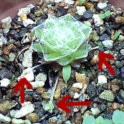 この後、ウーパールーパーのエラのような羽状複葉が分厚い双葉の隙間から出てきます。