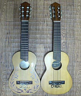 左が昼用、右が夜用。右はアーニーボールのブラック&シルバー弦のまま・・・。